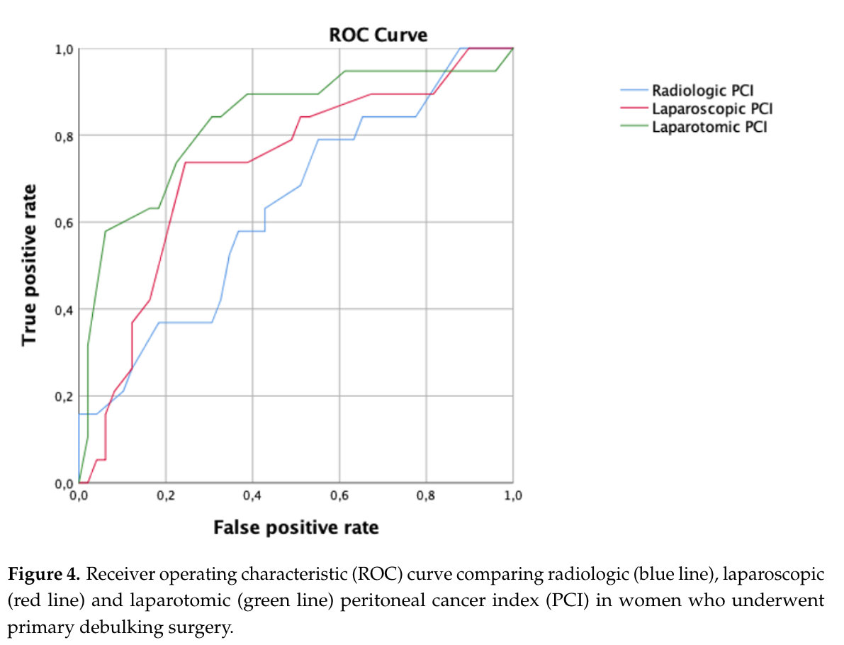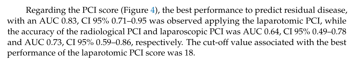 The ROC curve and AUC are frequently reported in clinical research. Figure 5.13 shows an example from Di Donna et al. (2023), where different scoring systems are compared using their ROC curves and AUC values.