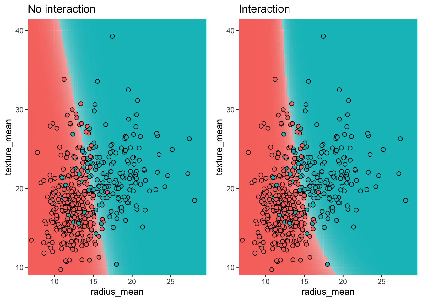 Model 1: diagnosis ~ radius_mean + texture_mean