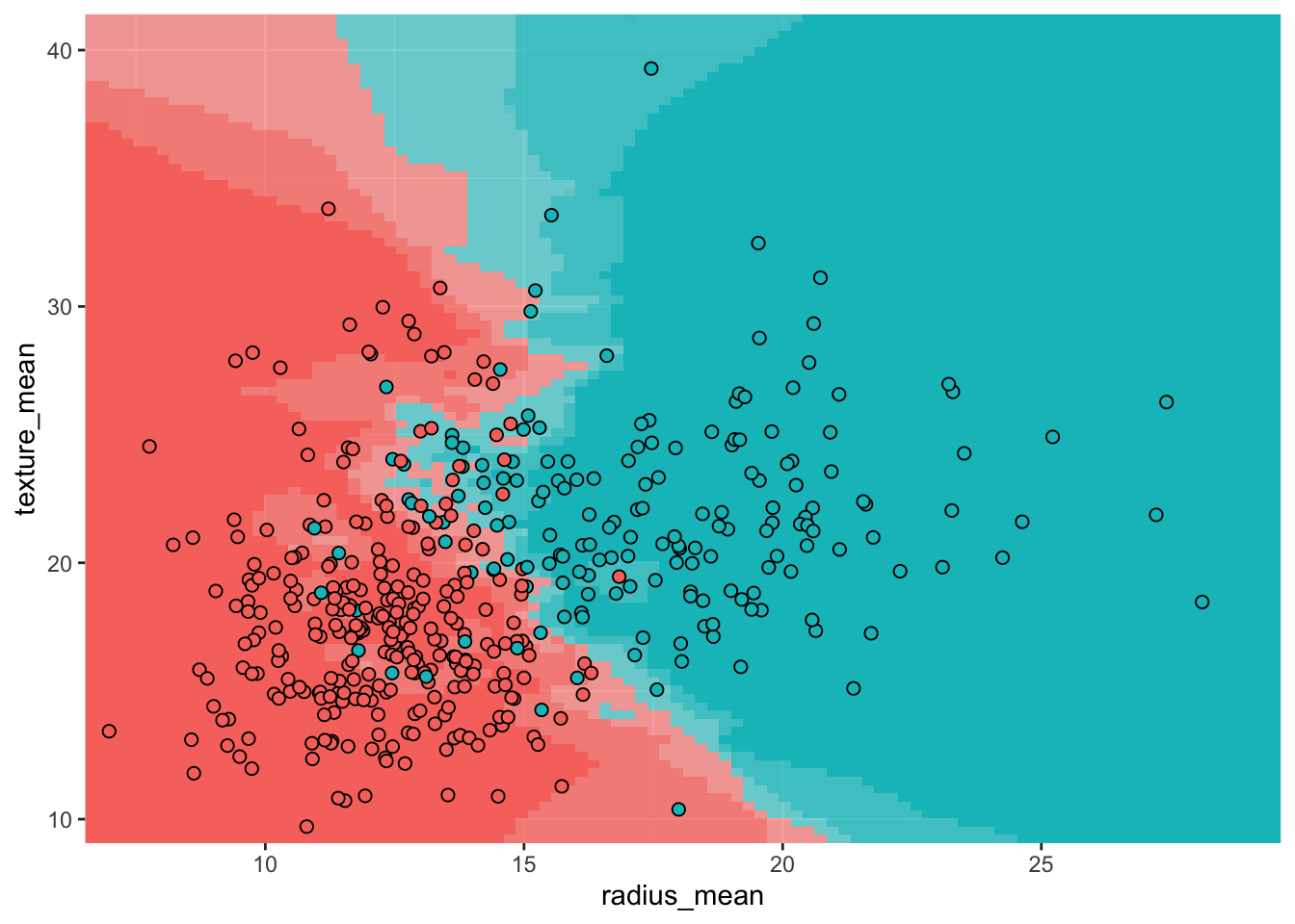 model_knn_5 <- knn3(diagnosis ~ radius_mean + texture_mean, data = train, k = 5)