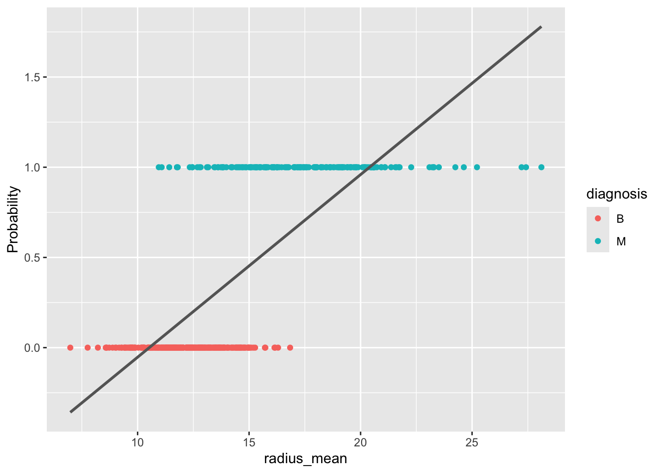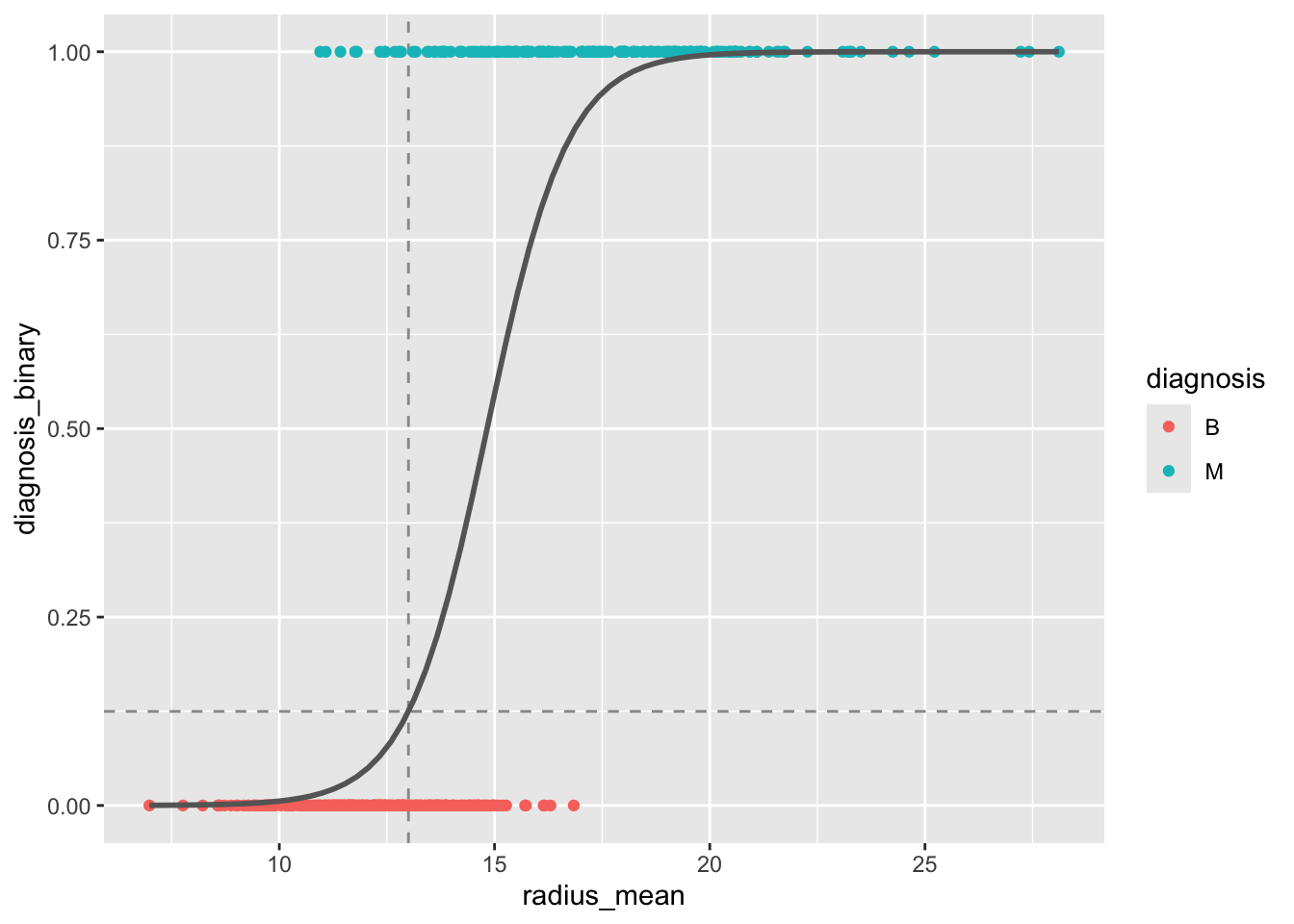 m_simple <- glm(diagnosis ~ radius_mean, data = train, family = "binomial")